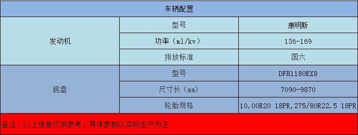 康明斯發動機,法士特變速箱,7-9T前橋,13-16T后橋